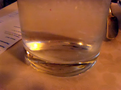 13. Dolce gianna, io nell'acqua ci vedo delle gocce di cioccolata o residui di cioccolata, spero che era fresca se l'hai bevuta, puo' capitare che con un vassoi passando sulla brocca, poteva cadere qualche briciola nell'acqua.